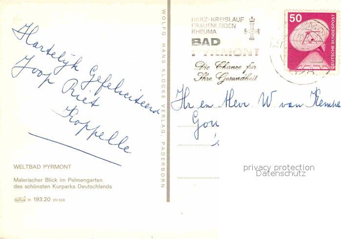 72887103 alte Postkarte Bad Pyrmont Palmengarten postalisch gelaufen Erhaltung siehe scans [LiesaD40] KatCode: 11110003252003