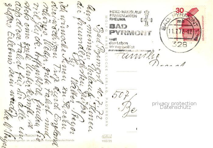 73018390 alte Postkarte Bad Pyrmont Palmengarten im Kurpark postalisch gelaufen Erhaltung siehe scans [WerneD78] KatCode: 11110003252003