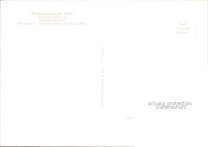71929516 Bad Pyrmont Privatsanatorium Dr Krael postalisch nicht gelaufen Erhaltung siehe scans KatCode: 11110003252003