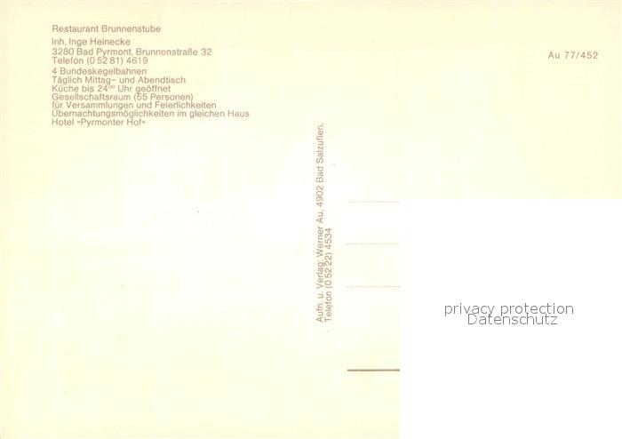 73641584 Bad Pyrmont Restaurant Brunnenstube Kegelbahn postalisch nicht gelaufen Erhaltung siehe scans [FriedD77] KatCode: 11110003252003