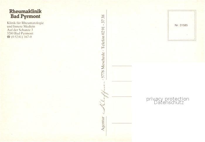 72966841 Bad Pyrmont Rheumaklinik postalisch nicht gelaufen Erhaltung siehe scans [LiesaD40] KatCode: 11110003252003