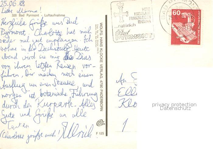 73705357 alte Postkarte Bad Pyrmont Schloss Kurpark postalisch gelaufen Fliegeraufnahme Erhaltung siehe scans [FriedD77] KatCode: 11110003252003