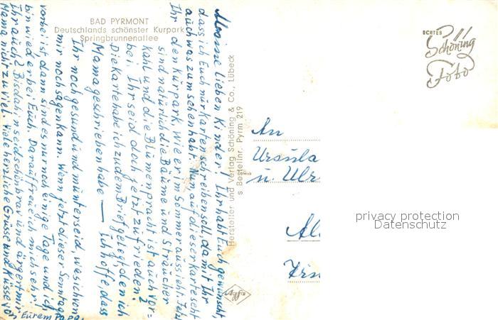 72992569 alte Postkarte Bad Pyrmont Springbrunnenallee postalisch gelaufen Erhaltung siehe scans [AndreD76] KatCode: 11110003252003