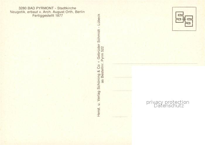73145024 Bad Pyrmont Stadtkirche Neugotik Erbauer Architekt August Orth 19. Jhdt. postalisch nicht gelaufen Erhaltung siehe scans [FriedD77] KatCode: 11110003252003