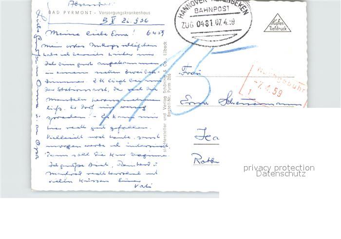 alte Postkarte Bad Pyrmont Versorgungskrankenhaus postalisch gelaufen Erhaltung siehe scans