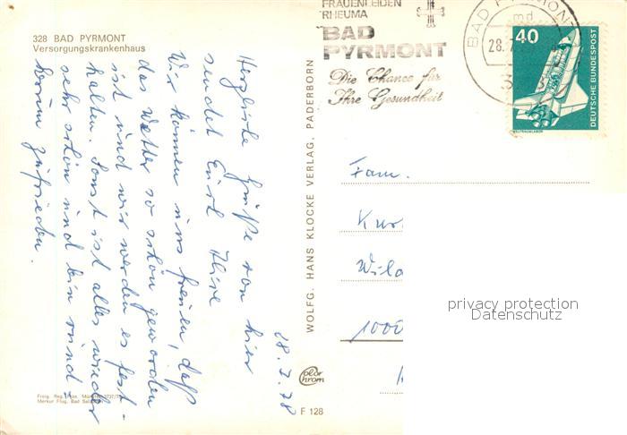 73656362 alte Postkarte Bad Pyrmont Versorgungskrankenhaus Fliegeraufnahme postalisch gelaufen Erhaltung siehe scans [WerneD78] KatCode: 11110003252003