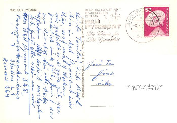 73101134 alte Postkarte Bad Pyrmont Versorgungskrankenhaus Malerblick Palmengarten postalisch gelaufen Erhaltung siehe scans [WerneD78] KatCode: 11110003252003