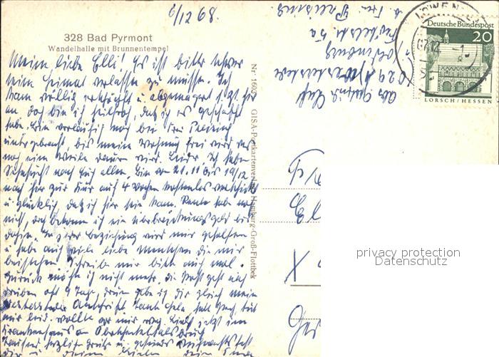 72418974 alte Postkarte Bad Pyrmont Wandelhalle Brunnentempel postalisch gelaufen Erhaltung siehe scans KatCode: 11110003252003