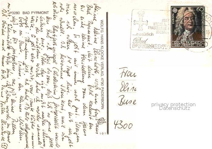 72654732 alte Postkarte Bad Pyrmont Weser Klinik Schwimmhalle Speisesaal Aussenansicht postalisch gelaufen Erhaltung siehe scans [AndreD76] KatCode: 11110003252003