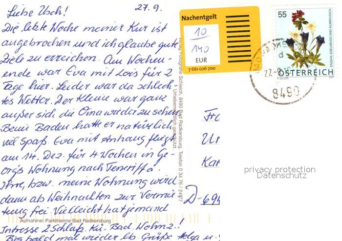 12943337 alte Postkarte Bad Radkersburg Fliegeraufnahme postalisch gelaufen Erhaltung siehe scans [NatalD47] KatCode: 11390224061513