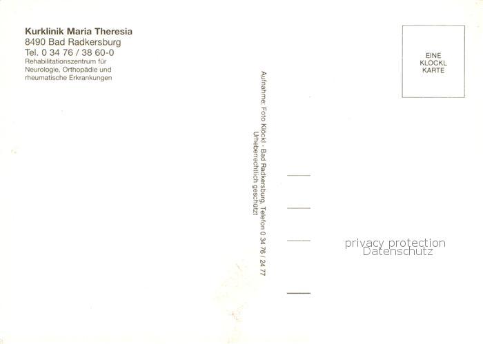 73786080 Bad Radkersburg Kurklinik Maria Theresia postalisch nicht gelaufen Erhaltung siehe scans [LiesaD40] KatCode: 11390224061513
