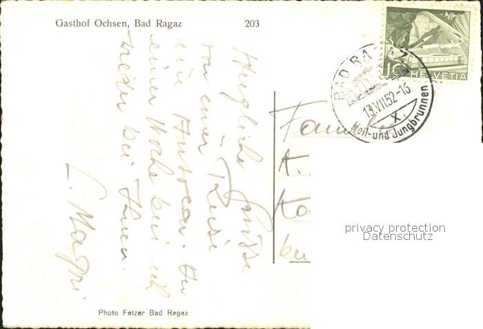 11631203 alte Postkarte Bad Ragaz Ragatz Gasthof Ochsen postalisch gelaufen Erhaltung siehe scans KatCode: 11470190565614