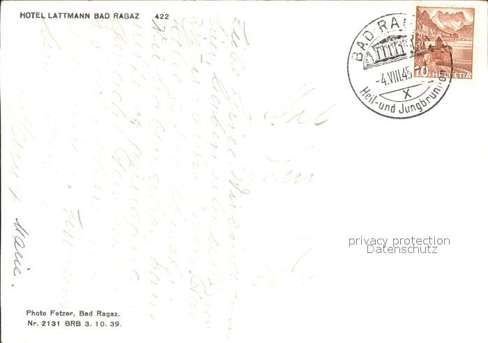 11646289 alte Postkarte Bad Ragaz Ragatz Hotel Lattmann postalisch gelaufen Erhaltung siehe scans KatCode: 11470190565614