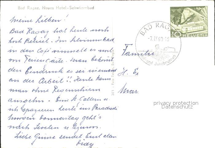 11630514 alte Postkarte Bad Ragaz Ragatz Neues Hotel Schwimmbad postalisch gelaufen Erhaltung siehe scans KatCode: 11470190565614