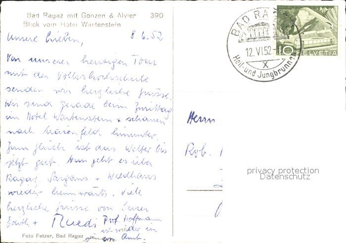 11626890 alte Postkarte Bad Ragaz Ragatz Panorama Blick vom Hotel Wartenstein Gonzen Alvier postalisch gelaufen Erhaltung siehe scans KatCode: 11470190565614