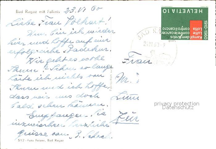 11646303 alte Postkarte Bad Ragaz Ragatz Panorama mit Falknis Raetikon postalisch gelaufen Erhaltung siehe scans KatCode: 11470190565614