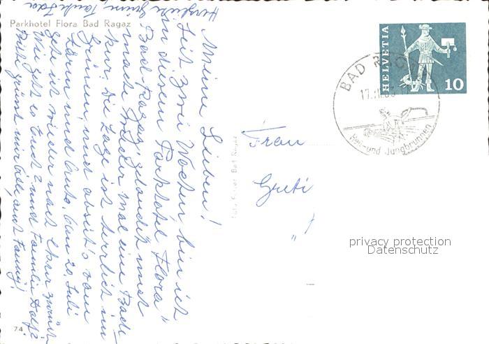 11631202 alte Postkarte Bad Ragaz Ragatz Parkhotel Flora postalisch gelaufen Erhaltung siehe scans KatCode: 11470190565614