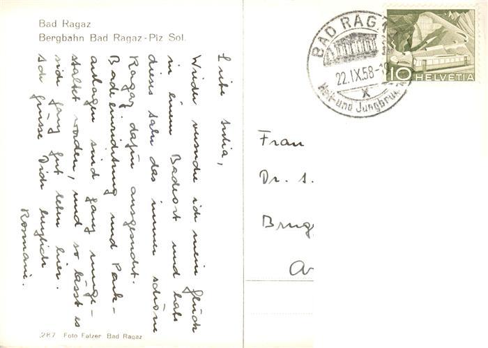 13871387 Bad Ragaz Ragatz SG Bergbahn Bad Ragaz Piz Sol postalisch gelaufen Erhaltung siehe scans [WerneD78] alte Postkarte Wern Katcode 11470190565614