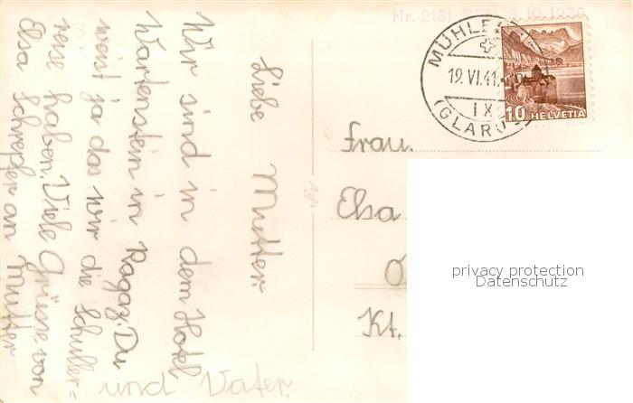 13800003 alte Postkarte Bad Ragaz Ragatz SG Hotel Restaurant Wartenstein postalisch gelaufen Erhaltung siehe scans [FriedD77] KatCode: 11470190565614