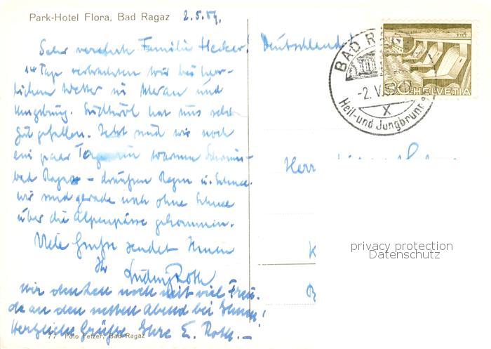 13855276 alte Postkarte Bad Ragaz Ragatz SG Parkhotel postalisch gelaufen Erhaltung siehe scans [FriedD77] KatCode: 11470190565614
