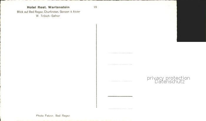 11630335 Bad Ragaz Ragatz Vom Hotel Restaurant Wartenstein postalisch nicht gelaufen Erhaltung siehe scans KatCode: 11470190565614