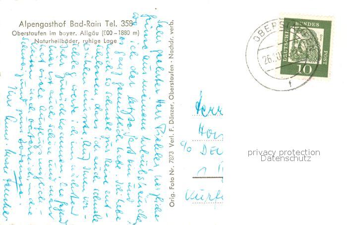 73645667 alte Postkarte Bad Rain Oberstaufen Alpengasthof postalisch gelaufen Erhaltung siehe scans [FriedD77] KatCode: 11110009780132