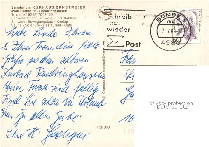 73662612 alte Postkarte Bad Randringhausen Kurhaus Ernstmeier Sanatorium Restaurant Cafe Foyer postalisch gelaufen Erhaltung siehe scans [FriedD77] KatCode: 11110005758004