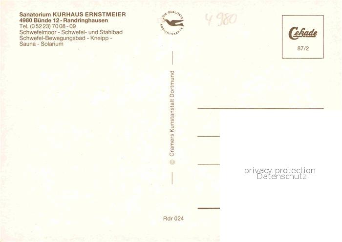72869505 Bad Randringhausen Kurhaus Ernstmeier Schwimmbad postalisch nicht gelaufen Erhaltung siehe scans [LiesaD40] KatCode: 11110005758004