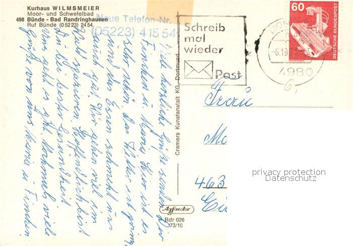 73662614 alte Postkarte Bad Randringhausen Kurhaus Wilmsmeier Restaurant Moor- und Schwefelbad Waldpartie Teich postalisch gelaufen Erhaltung siehe scans [FriedD77] KatCode: 11110005758004