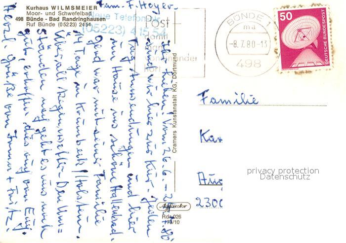 73171835 alte Postkarte Bad Randringhausen Kurhaus Wilmsmeier postalisch gelaufen Erhaltung siehe scans [NatalD47] KatCode: 11110005758004