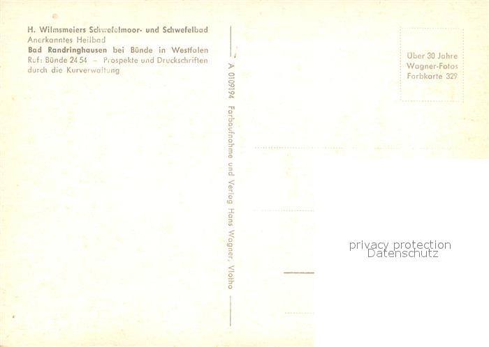 73688383 Bad Randringhausen Wilmsmeiers Schwefelmoor- und Schwefelbad Heilbad postalisch nicht gelaufen Erhaltung siehe scans [FriedD77] KatCode: 11110005758004