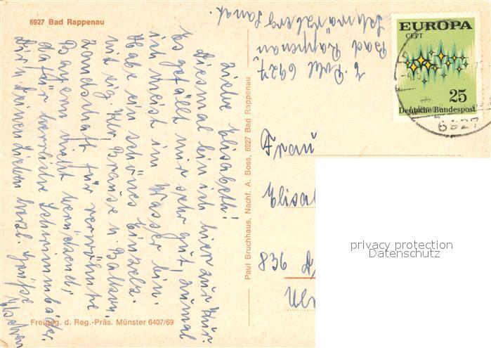73684870 alte Postkarte Bad Rappenau Fliegeraufnahme postalisch gelaufen Erhaltung siehe scans [FriedD77] KatCode: 11110008125006