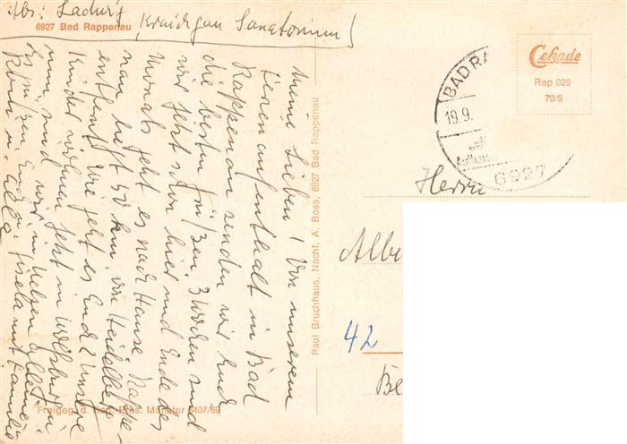 73877465 alte Postkarte Bad Rappenau Fliegeraufnahme postalisch gelaufen Erhaltung siehe scans [WerneD78] KatCode: 11110008125006