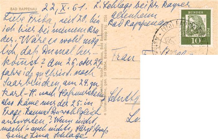 73937643 alte Postkarte Bad Rappenau Fliegeraufnahme postalisch gelaufen Erhaltung siehe scans [FriedD77] KatCode: 11110008125006