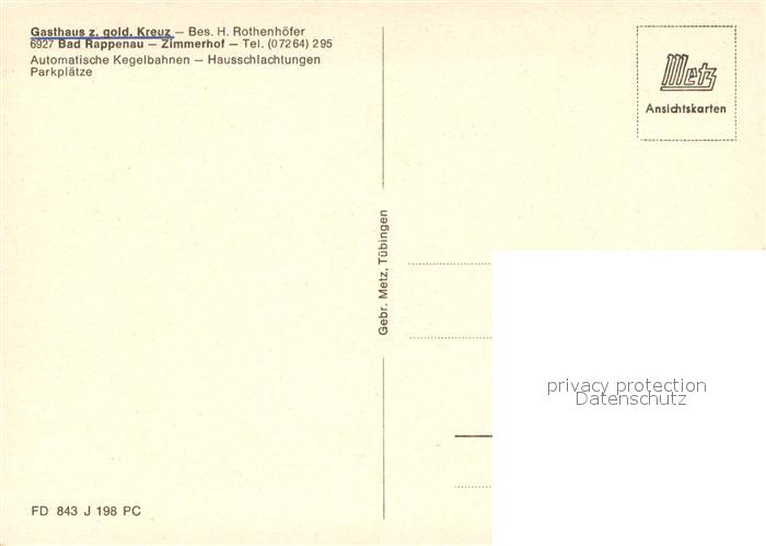 73648750 Bad Rappenau Gasthaus zum Goldenen Kreuz Fuenfmuehlental Gaststube Kegelbahn postalisch nicht gelaufen Erhaltung siehe scans [WerneD78] KatCode: 11110008125006