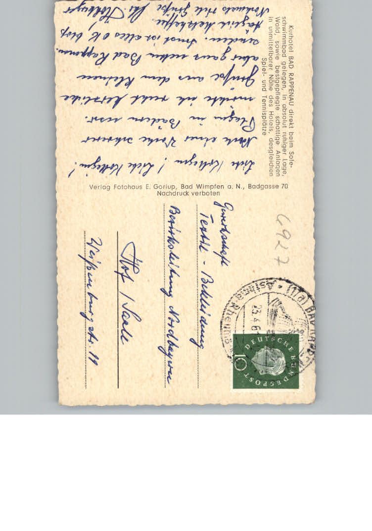 31147907 Bad Rappenau Hotel postalisch nicht gelaufen KatCode: 11110008125006