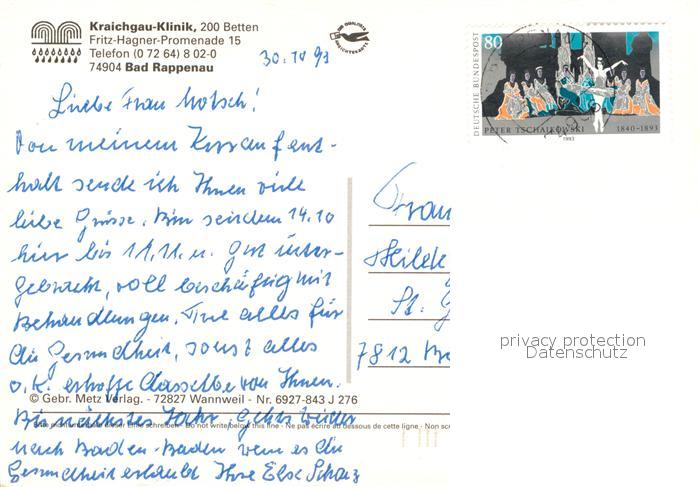 73083441 alte Postkarte Bad Rappenau Kraichgau Klinik postalisch gelaufen Erhaltung siehe scans [KathaD81] KatCode: 11110008125006
