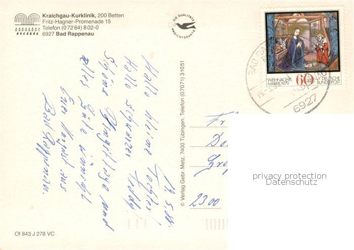 73759439 alte Postkarte Bad Rappenau Kraichgau Kurklinik postalisch gelaufen Erhaltung siehe scans [FriedD77] KatCode: 11110008125006