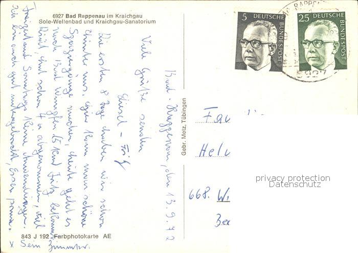 71991877 alte Postkarte Bad Rappenau Kraichgau Sole Wellenbad Kraichgau Sanatorium postalisch gelaufen Erhaltung siehe scans KatCode: 11110008125006