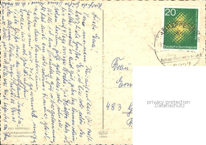 72585132 alte Postkarte Bad Rappenau Kraichgausanatorium Sprudelbrunnen postalisch gelaufen Erhaltung siehe scans [AntonD74] KatCode: 11110008125006