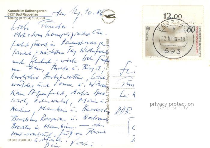 73660998 alte Postkarte Bad Rappenau KurCafe im Salinengarten Terrasse postalisch gelaufen Erhaltung siehe scans [FriedD77] KatCode: 11110008125006