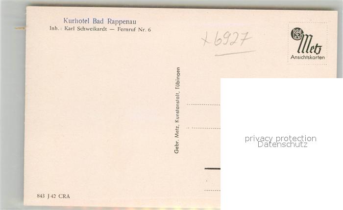 42937797 Bad Rappenau Kurhotel postalisch nicht gelaufen Erhaltung siehe scans [KathaD81] KatCode: 11110008125006