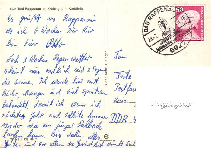 72949629 alte Postkarte Bad Rappenau Kurklinik postalisch gelaufen Erhaltung siehe scans [WerneD78] KatCode: 11110008125006