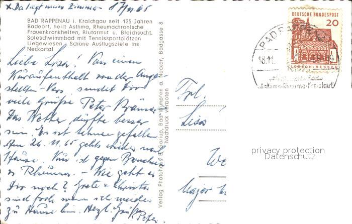 71906772 alte Postkarte Bad Rappenau Panorama Kirche Kraichgausanatorium Halle Wasserschloss Schwaerzbergsanatorium postalisch gelaufen Erhaltung siehe scans KatCode: 11110008125006