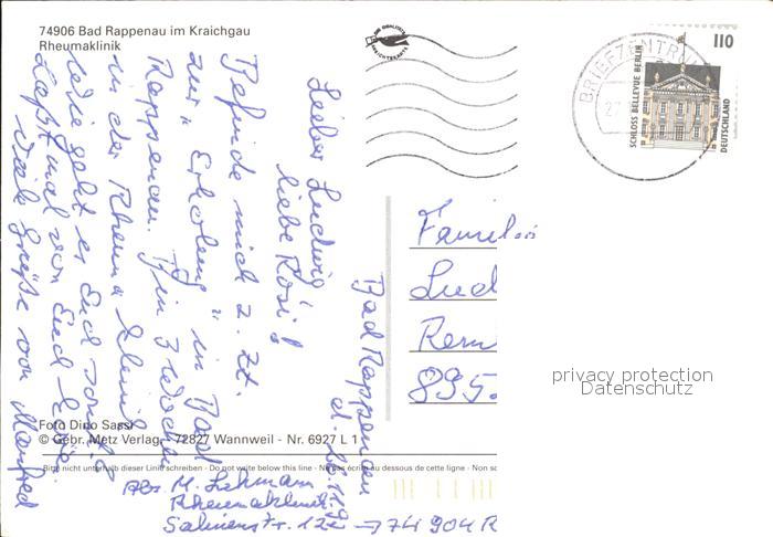 72049450 alte Postkarte Bad Rappenau Rheumaklinik postalisch gelaufen Erhaltung siehe scans KatCode: 11110008125006