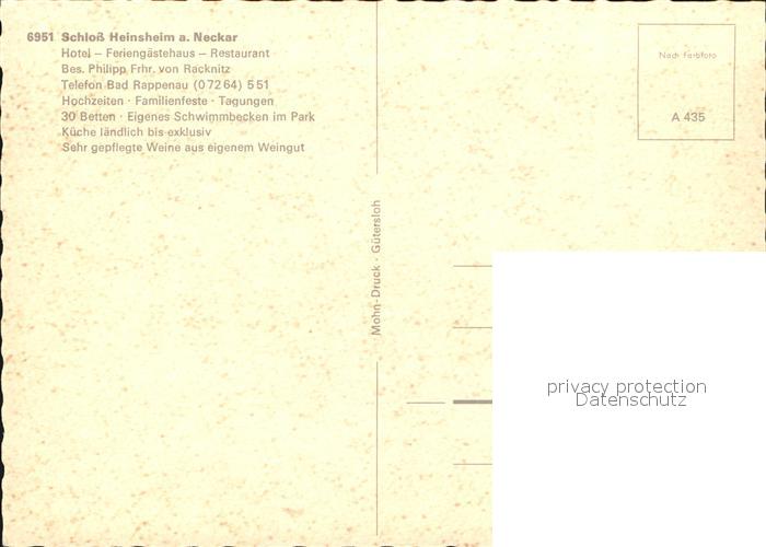 72612102 Bad Rappenau Schloss einsheim am Neckar postalisch nicht gelaufen Erhaltung siehe scans [AndreD76] KatCode: 11110008125006