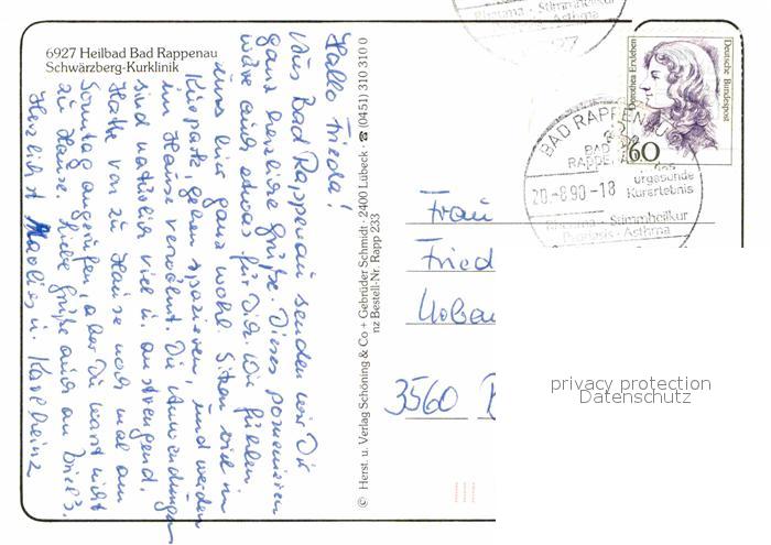72877703 alte Postkarte Bad Rappenau Schwaerzberg Klinik Kirche Pavillon postalisch gelaufen Erhaltung siehe scans [AndreD76] KatCode: 11110008125006