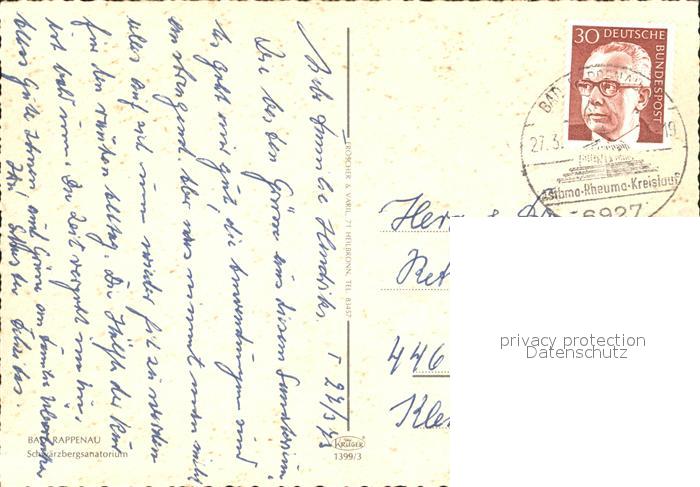 72244011 alte Postkarte Bad Rappenau Schwaerzbergsanatorium postalisch gelaufen Erhaltung siehe scans KatCode: 11110008125006