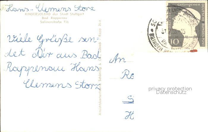 72253107 alte Postkarte Bad Rappenau Stadtblick Kindersolbad Stuttgart Sole Schwimmbad Kurtrinkbrunnen postalisch gelaufen Erhaltung siehe scans KatCode: 11110008125006