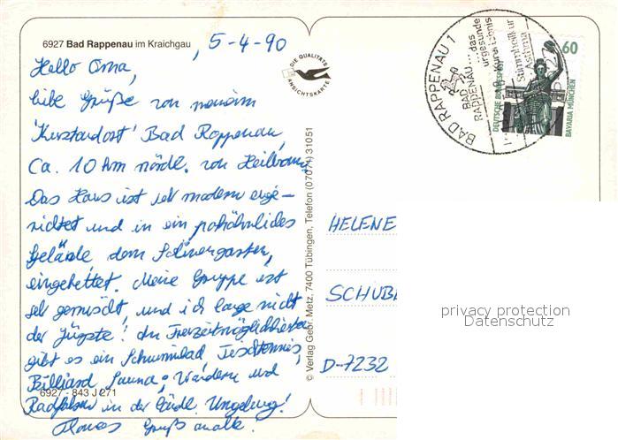 72896885 alte Postkarte Bad Rappenau Stadtkirche Alte Saline Kurpark postalisch gelaufen Erhaltung siehe scans [KathaD81] KatCode: 11110008125006